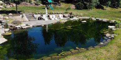 Fully loaded recreation swim pond with rain harvester.
